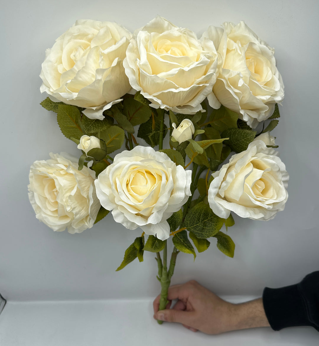 Ramificazione di rose artificiali- a 6 con 2 boccioli color crema