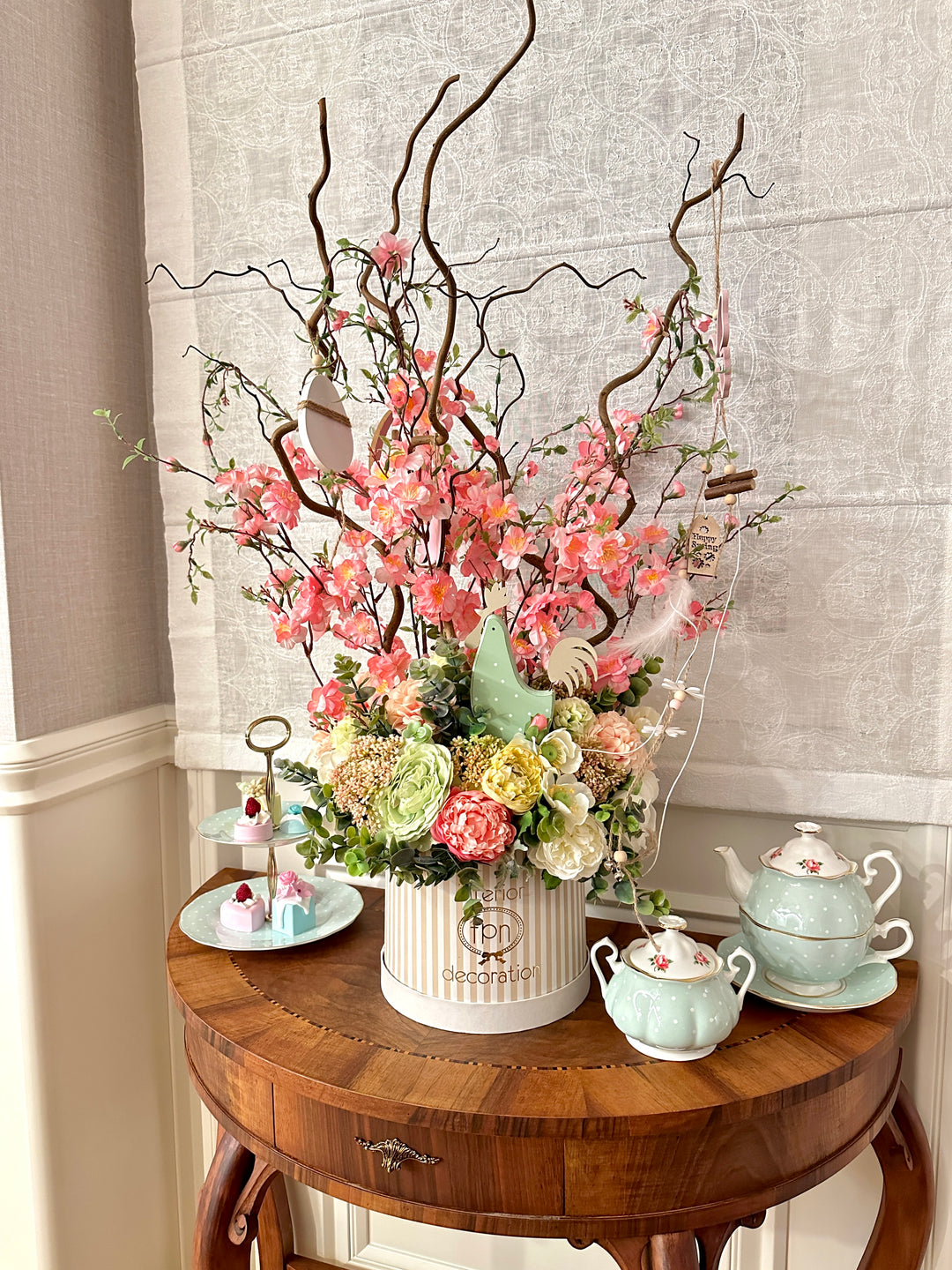 Flowery easter. Box con rami di nocciolo e fiori di pesco