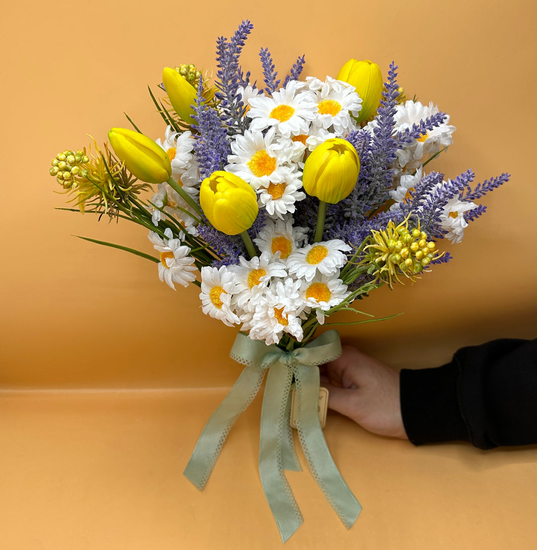 BOUQUET-PRIMAVERA CONSIGLIATO DA NOI PER I VOSTRI VASI- LAVANDA-MARGHERITE-TULIPANI-CARDO-H38CM special price